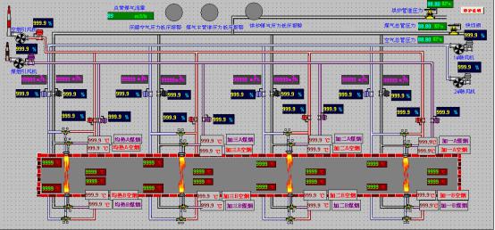 显示所有加热炉的运行状态。包括均热段及各加热段的实际温度、等。